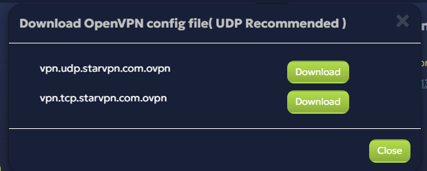 Once you are connected, login to the StarVPN dashbard to configure your IP Type, Geo-location and ISP. No additional configuration files are required.